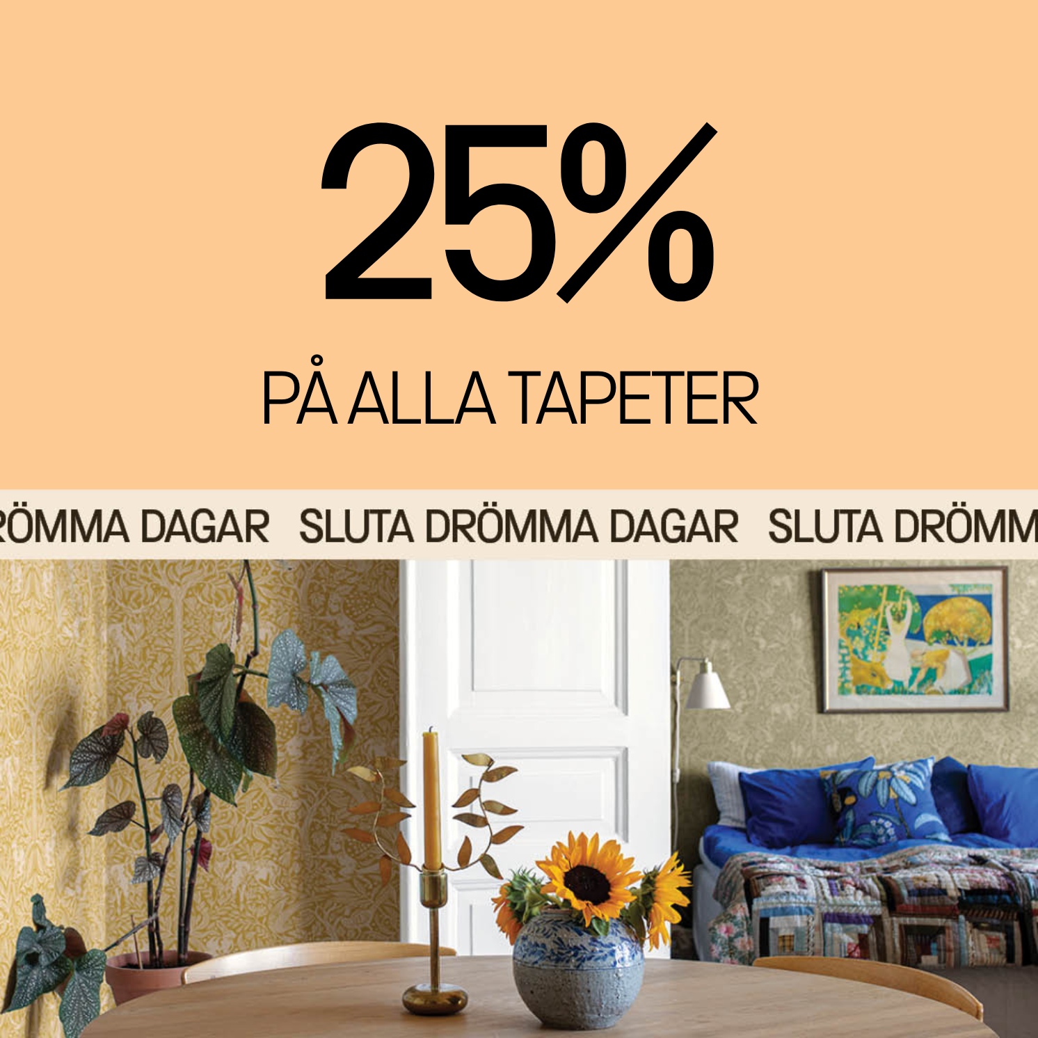 Nu är det dags att förnya hemma. Under våra kampanjdagar får du 20% på vägg- och takfärg, 20% på textilgolv och 25% på tapeter. Ett perfekt tillfälle att ge rummen ett lyft oavsett om du planerar en större förändring eller bara vill fräscha upp med nya färger och mönster.